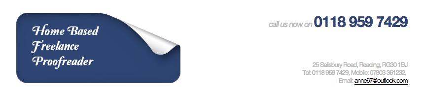 Home Based Freelance Proofreader, Proofreading Reading, Proofreader Berkshire.
